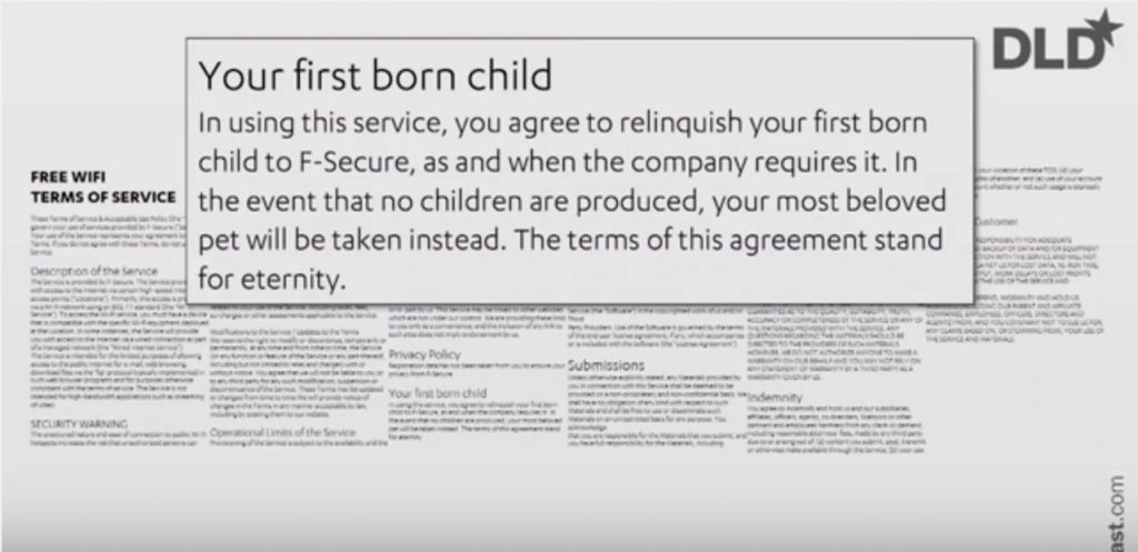 En un estudio experimental el 93% de 543 participantes aceptaron los términos de servicio y la política de privacidad de una red social que exigía entregar al primogénito como pago.