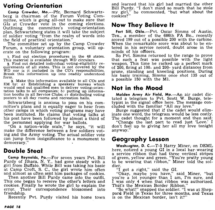 "Double Steal". Yank, The Army Weekly. Vol. 3, N° 3, 7 de julio de 1944 Pág. 18 https://www.indianamilitary.org/YANK/1944-07-07%20Yank%20Magazine.pdf