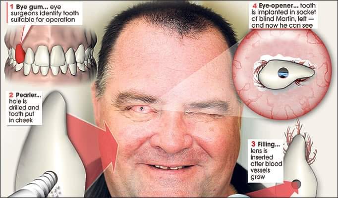 Cuando no es posible realizar un trasplante de córnea, una opción para recuperar la visión del ojo es la osteo-odonto-queratoprótesis, la colocación en el ojo de una córnea artificial elaborada con un diente del propio organismo.